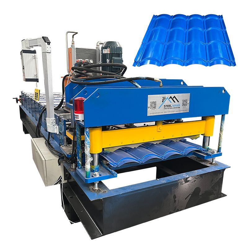 1. The color metal roofing tile machine is a hydraulic cylinder that drives the mold to move up and down, which can press the color steel into many sections,which look like glazed tiles. The cutter part is driven by the hydraulic cylinder to move the cutter up and down, which can cut the colored steel tiles.