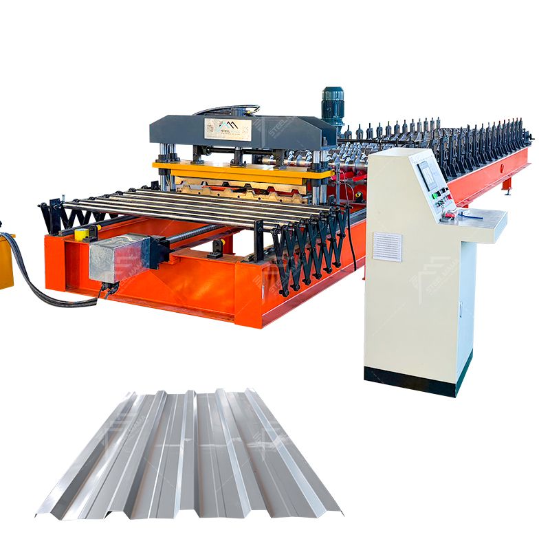 STEELMAMA designs and builds customized trapezoidal sheet roll forming machines. For instance, some customers ask for metal roofing sheet roll forming machine, some customers may prefer a separate forming stands structure trapezoidal sheet roll forming machine, or some customers may need safety guard on the roll forming machine body etc.